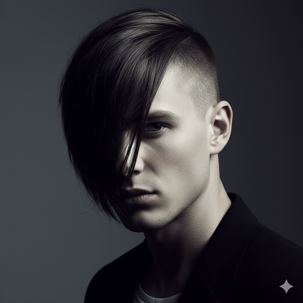 Styling Tip:  Ask your barber to razor-cut the longer side for softer movement. Style the longer section forward or across the forehead for maximum editorial impact.