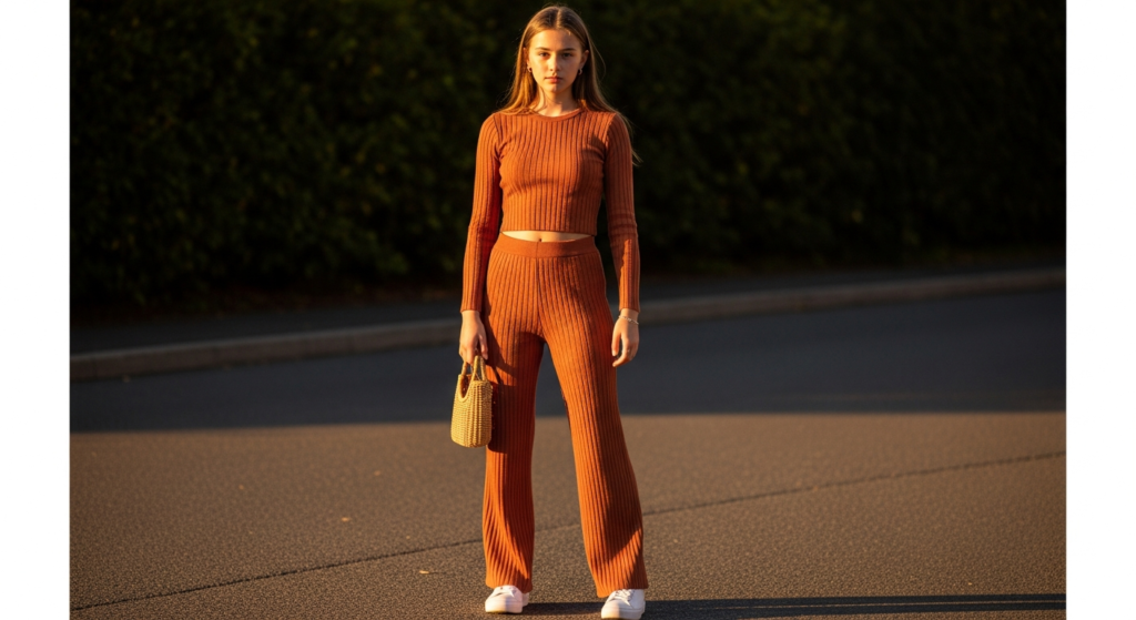 Styling Tip: Choose a co-ord set in a fabric that has natural texture and visual interest — a ribbed knit, a textured linen, a quality cotton jersey — in a tone that complements your existing accessories. Warm cream, dusty sage, warm terracotta, soft brown, and warm grey are the most versatile and most photogenic co-ord set tones for teen casual wear. Add white trainers or simple sandals, a quality bag, and minimal jewellery. Wear the top tucked, half-tucked, or loose depending on the specific design — experiment with the silhouette options the set naturally offers.