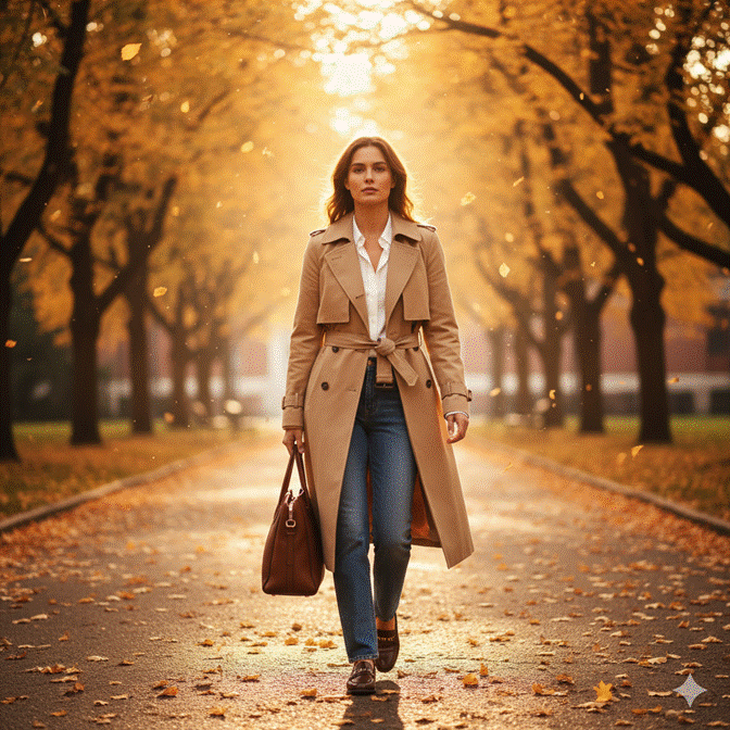 ✦ Style Tip: Tie the trench coat belt in a loose, slightly off-centre knot rather than a bow — this creates a more relaxed, editorial quality that photographs beautifully and avoids the stiff formality of a precisely tied belt. Slightly pushing one lapel up adds a further editorial detail that signals genuine style awareness without looking tried.