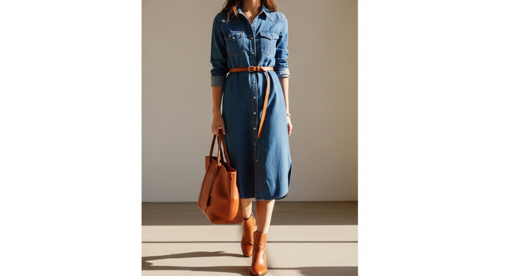 Styling Tip: Choose a denim dress in a quality medium-weight denim with genuine structure — it should hold its shape throughout a full day of wearing without softening or losing its silhouette. A shirt dress style in a clean medium wash, worn belted at the waist, is the most versatile and the most broadly occasion-appropriate denim dress format. Add leather sandals or ankle boots depending on the season, a quality leather or woven bag, and simple gold jewellery. Leave two to three top buttons casually undone for the most authentic and the most effortlessly styled denim dress look.