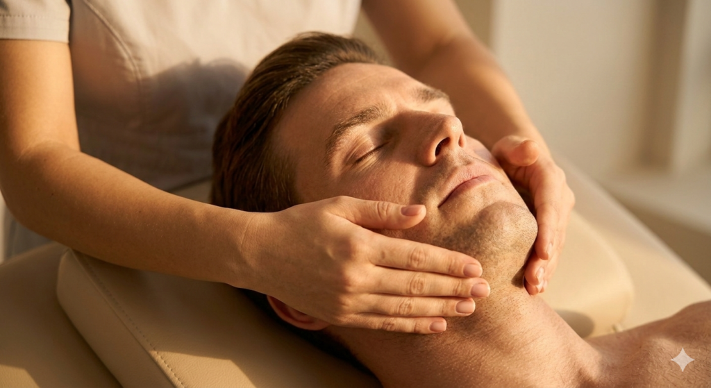 It’s a structured, step-by-step skincare treatment that deeply cleanses, exfoliates, treats, and protects your skin. Beyond relaxation, it helps solve common grooming issues and improves long-term skin health.