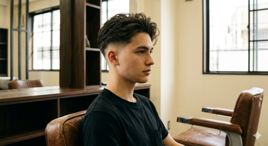 Modern men’s hairstyles are all about balance clean fade haircuts structure on the sides combined with expressive texture on top. The fade with long top haircut perfectly captures this balance, blending precision barbering with relaxed styling flexibility.