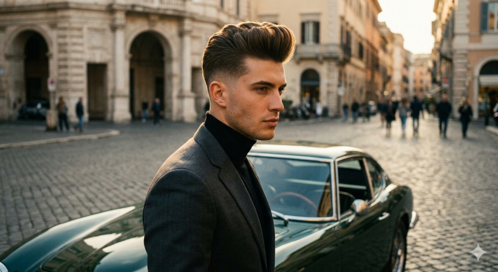 The pompadour fade remains one of the most iconic modern hairstyles.