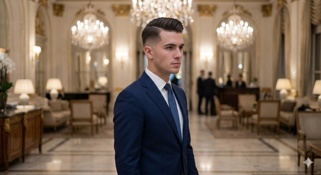 A side part fade offers timeless elegance with modern precision.