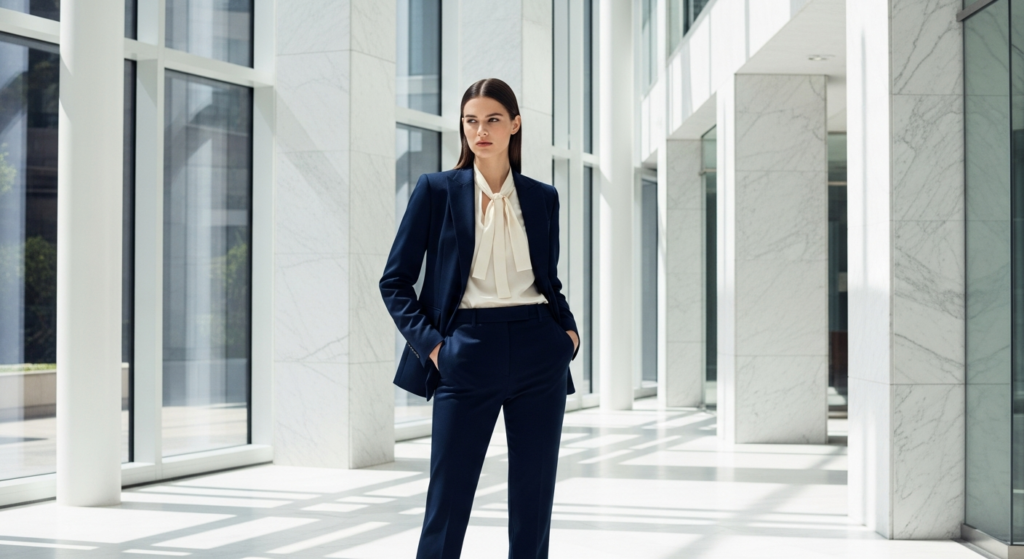 Styling Tip for the Post: Professional fashion photography benefits from clean, architectural settings that echo the structure and intention of the outfit — glass buildings, marble lobbies, minimal modern interiors, and clean urban professional environments. Use a 50mm lens in bright, clean natural light for the most polished and authoritative result. The posture and body language in professional fashion photography matters as much as the styling — stand with complete confidence, allowing the outfit and the body language to communicate the same message simultaneously.