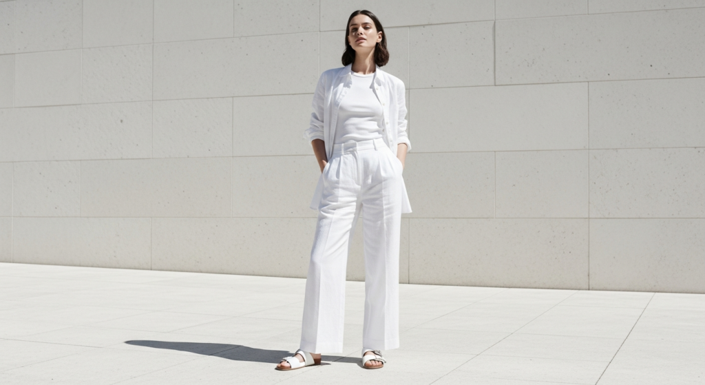 Styling Tip for the Post: White outfit posts are most breathtaking when shot in bright, clean outdoor light — midday sun, open shade, or a bright, airy interior with large windows. The most common mistake with white outfit photography is shooting in warm interior lighting that makes white clothing appear yellow or cream rather than crisp and bright. Natural daylight is the only light that preserves the true brightness of white clothing. Use a 35mm lens with slightly elevated exposure to ensure the whites appear luminous rather than flat.