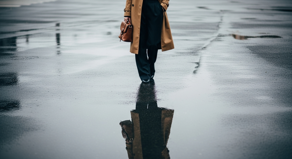 Styling Tip for the Post: Rainy day fashion photography is unexpectedly beautiful when embraced rather than avoided — wet streets create mirror-like reflective surfaces that double the visual impact of any outfit, overcast skies provide the most perfectly diffused natural light available, and the atmospheric quality of rain-softened environments creates images of genuine editorial depth. Use a 35mm lens to capture both the outfit and the atmospheric weather environment. Post-processing should emphasise the cool, moody tones of the scene rather than correcting them — the weather is the mood and the mood is the story.
