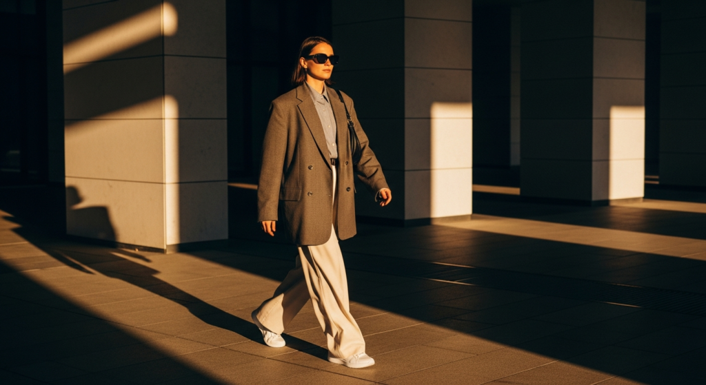 Styling Tip for the Post: Street style photography is most powerful when the architectural environment becomes an active part of the composition rather than simply a background. A clean urban wall, an interesting doorway, architectural steps, or a quiet alley with warm indirect light all create settings that amplify rather than compete with the outfit. Use a 35mm lens to capture both the full outfit and a meaningful portion of the urban environment. Shoot in warm morning or late afternoon light when urban settings have the most warmth and the most dimensional character.