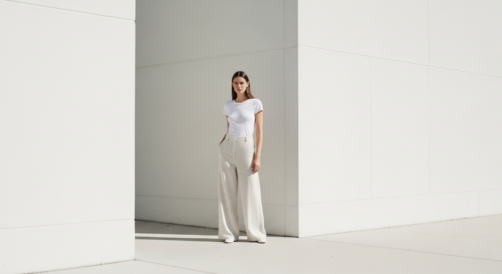 Styling Tip for the Post: Minimalist outfit photography demands the most precise and most intentional visual environment of any fashion content category. Clean backgrounds — white walls, pale marble, uncluttered interiors — are essential. Every element in the frame must be as considered as the outfit itself. Natural, diffused light with no harsh shadows preserves the calm, clean quality of the minimalist aesthetic. Use a 50mm lens at a medium distance and shoot with the minimum number of compositional elements — the outfit, clean negative space, and nothing that distracts.