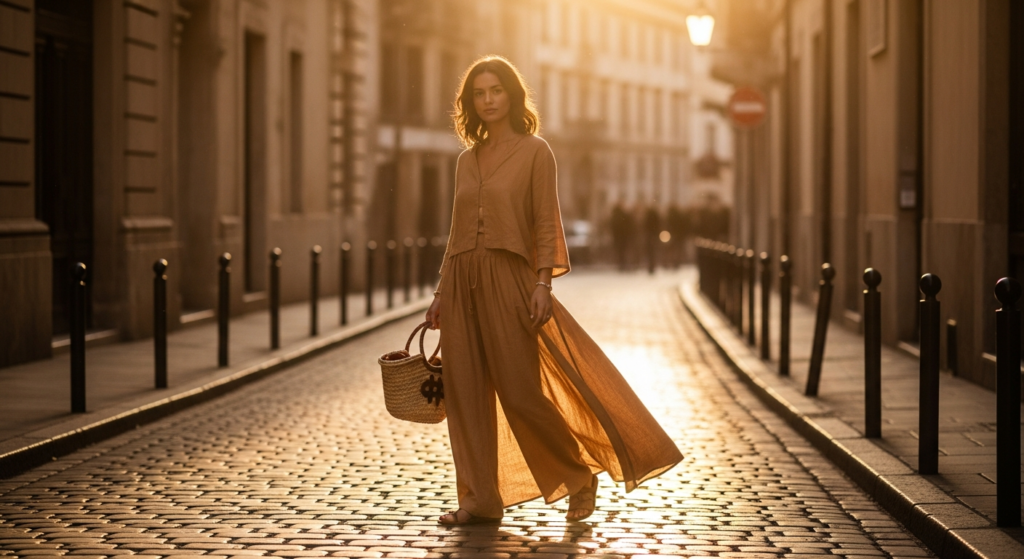 Styling Tip for the Post: Golden hour outfit photography benefits enormously from shooting facing the light source rather than having it behind you — this creates a beautiful, luminous glow across the face and outfit that no other lighting condition replicates. Use a 50mm lens at a comfortable distance to capture the full outfit silhouette while allowing the warm light to define the textures and tones of the clothing. Post these images without heavy filters — the natural warmth of golden hour is the most beautiful filter that exists.