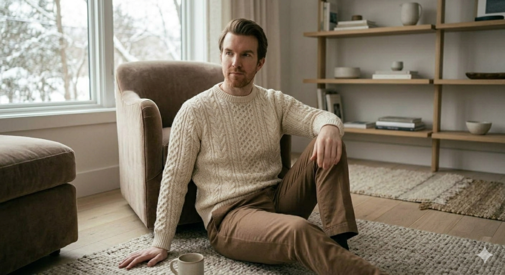 For cozy holiday gatherings, a cable knit sweater adds warmth and texture while maintaining a stylish appearance.