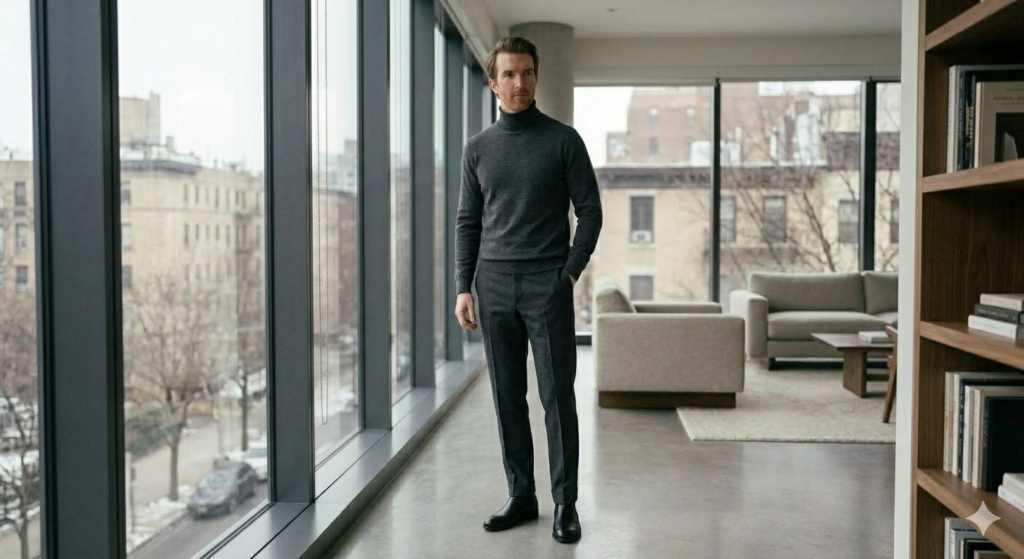 3. Turtleneck with Tailored Trousers