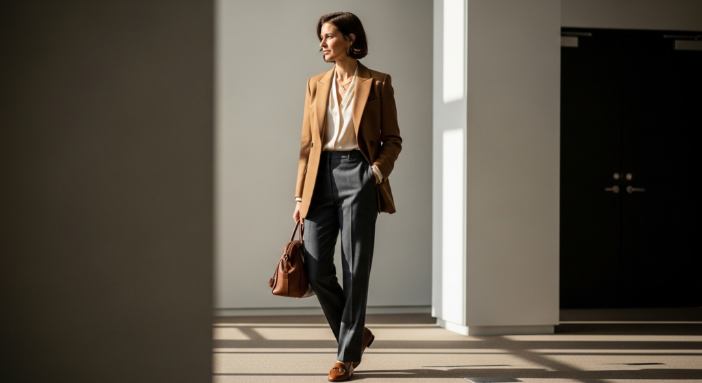 Styling Tip: Build a work week mode inspo capsule around five to seven versatile, high-quality pieces that combine across multiple outfit combinations for the full working week. A quality blazer in a warm neutral, two pairs of well-fitted straight-leg or wide-leg trousers in complementary tones, two quality blouses in silk or quality cotton, one fine knit sweater, and two pairs of shoes — leather loafers and clean ankle boots. These pieces generate a week of genuinely distinct, genuinely professional mode inspo outfits without requiring daily outfit construction from scratch. The quality of each individual piece — particularly the blazer and the blouses — communicates more about professional sophistication than any single outfit statement piece.