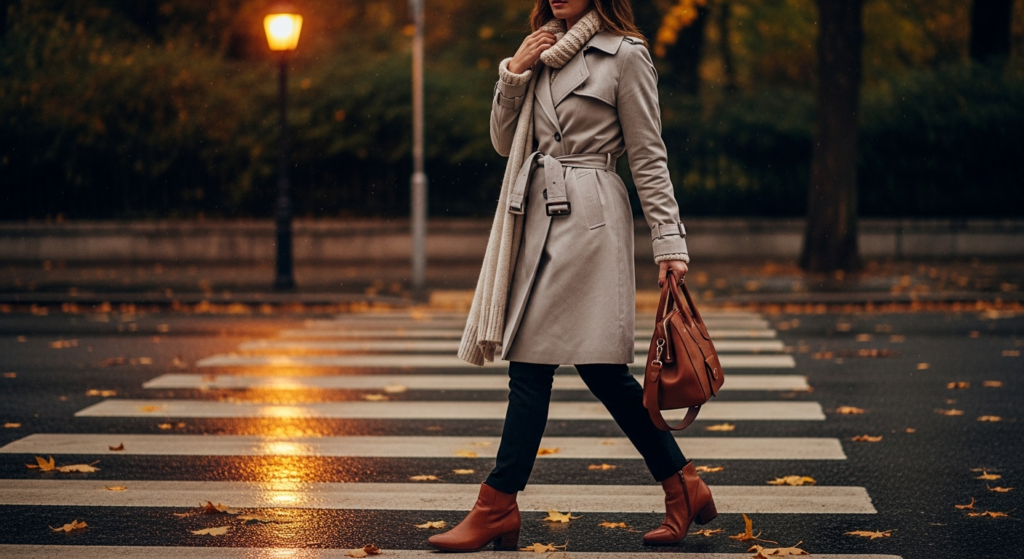 The trench coat returns every autumn as one of fashion’s most reliable and beautiful outerwear choices — and on Pinterest, it consistently ranks among the most-saved fall outfit inspo pieces for its combination of practical elegance and timeless appeal.