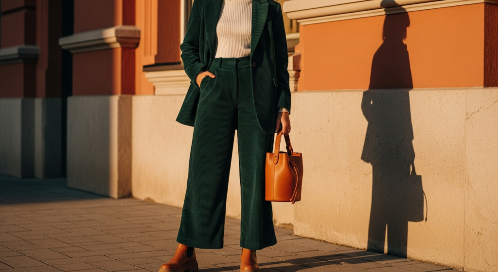 Corduroy has emerged as one of fall’s most celebrated texture trends, and its presence on Pinterest’s trending fall outfit inspo boards confirms its elevation from nostalgic fabric to genuinely chic seasonal statement.