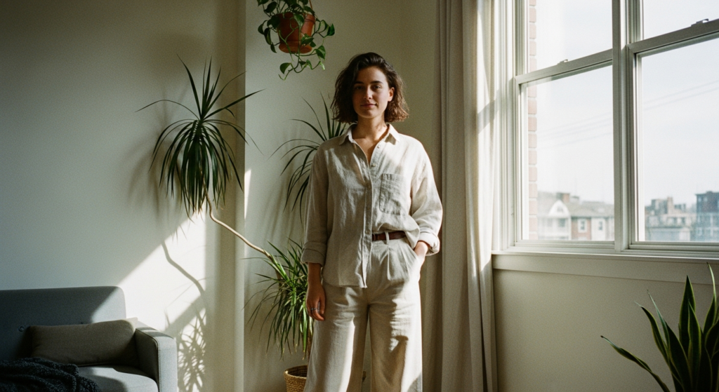 Choose breathable fabrics like linen. Keep the color palette neutral to avoid visual heaviness.