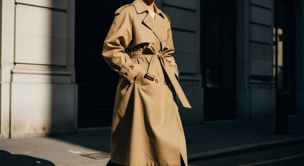 A trench coat in an oversized fit adds a timeless, editorial touch.