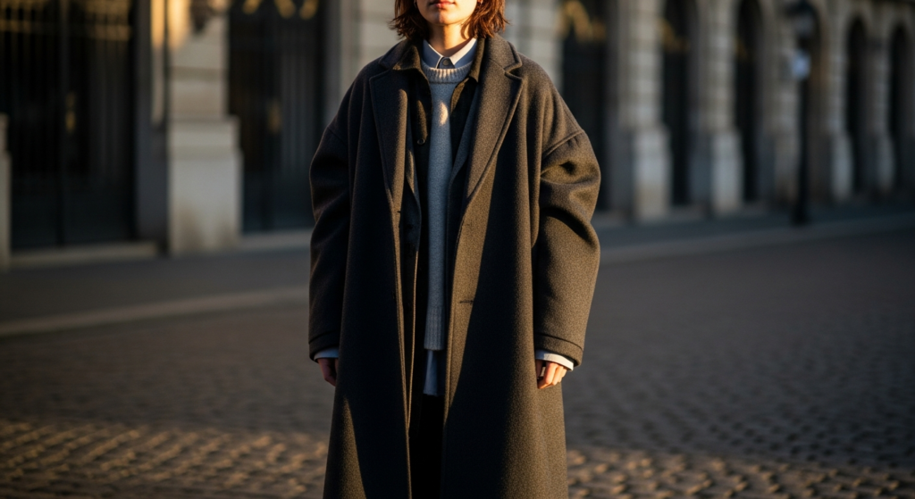 An oversized coat adds drama and sophistication to layered outfits.