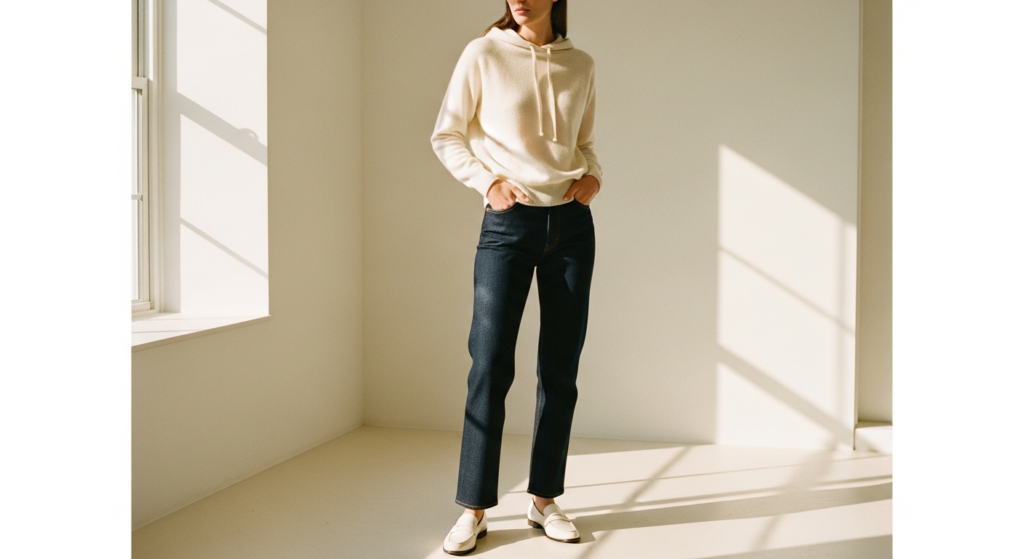 5. The Cashmere Hoodie and Straight-Leg Denim