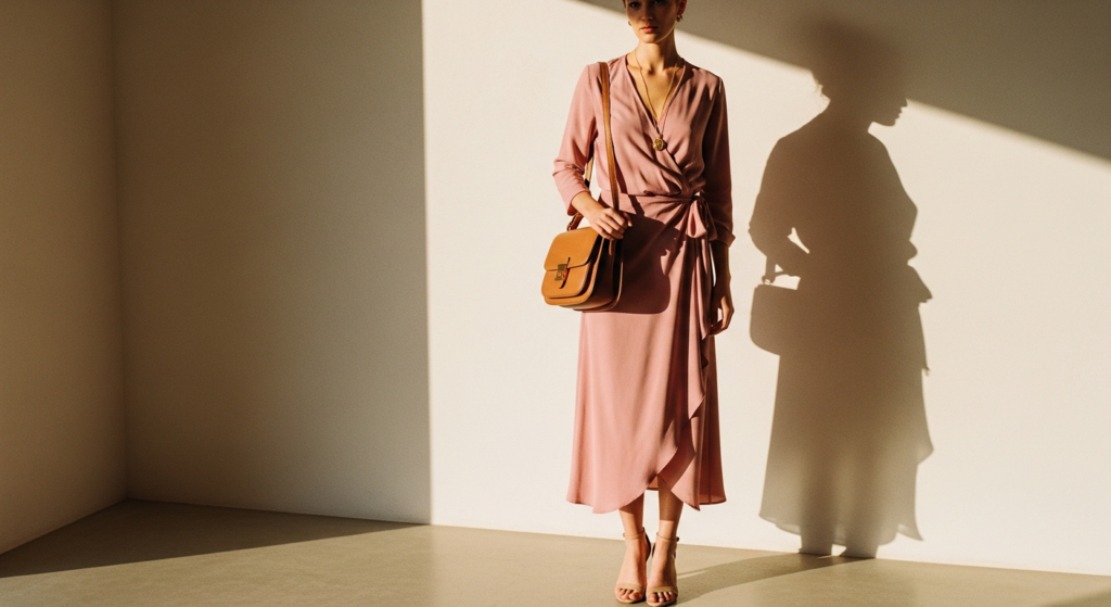 The wrap dress is one of fashion’s most universally flattering and enduringly simple silhouettes. In a solid neutral tone, it becomes a wardrobe anchor that works across seasons, body types, and occasions.