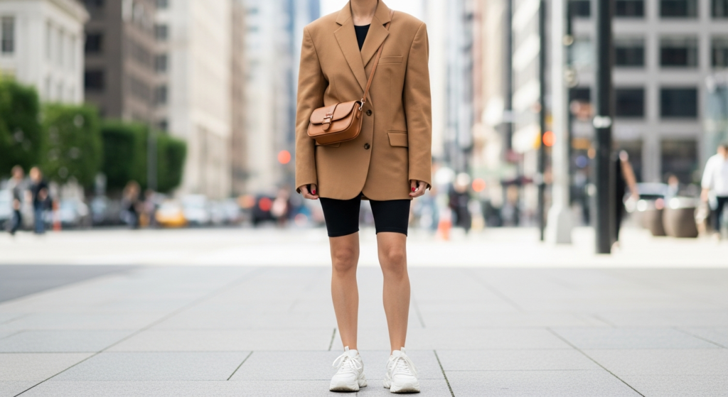 2. Oversized Blazer with Biker Shorts — Effortless Street Chic