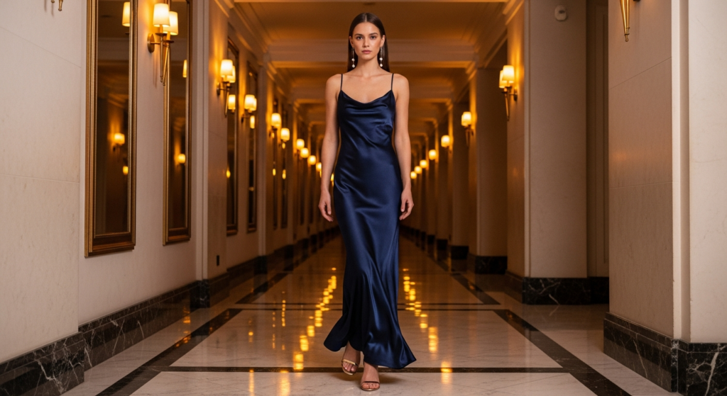 Styling tip: The single most powerful chic evening styling decision is footwear height and quality. A simple satin column dress worn with an exceptional pair of barely-there heeled sandals in gold or nude reads as genuinely glamorous. The same dress in flat sandals reads as casual. Footwear is the final word in evening chic dressing — choose it with the same care as the dress itself.