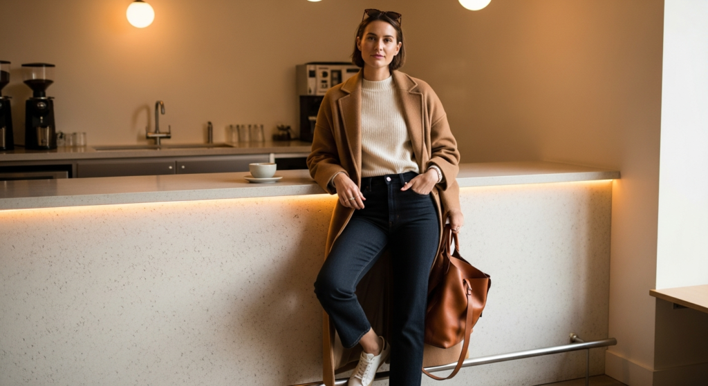 Styling tip: The casual chic outfit gains enormous authority from a great outerwear piece worn over it. A long camel coat, a classic trench, or a clean shearling jacket transforms even the simplest knit-and-trouser combination into a full and polished look. Invest in one exceptional coat each season — it will do more for your casual chic dressing than any other single purchase.