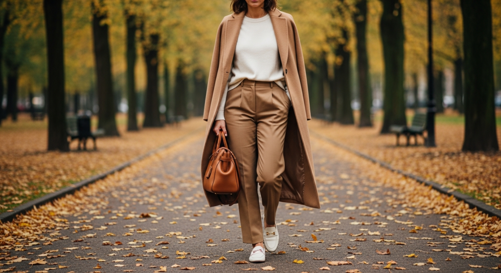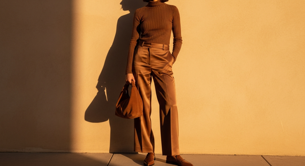 Styling tip: When building a monochrome chic look, begin with your strongest silhouette piece — the trouser, the coat, or the dress — and build the rest of the outfit’s tones around it. Allow for a range of two to three shades within the same color family (dark camel, mid camel, cream) rather than demanding a perfect single match. The slight tonal variation within a monochrome look reads as sophisticated and intentional rather than overly matchy.