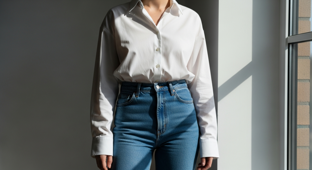 1. Classic White Shirt with High-Waisted Jeans