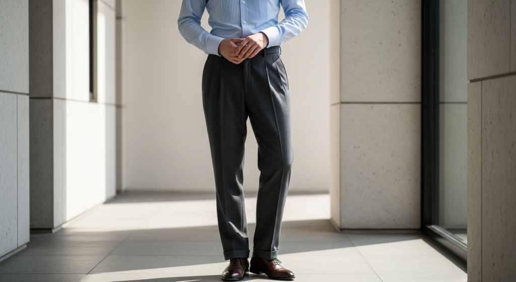 7. Button-Down Shirt with Straight-Leg Trousers