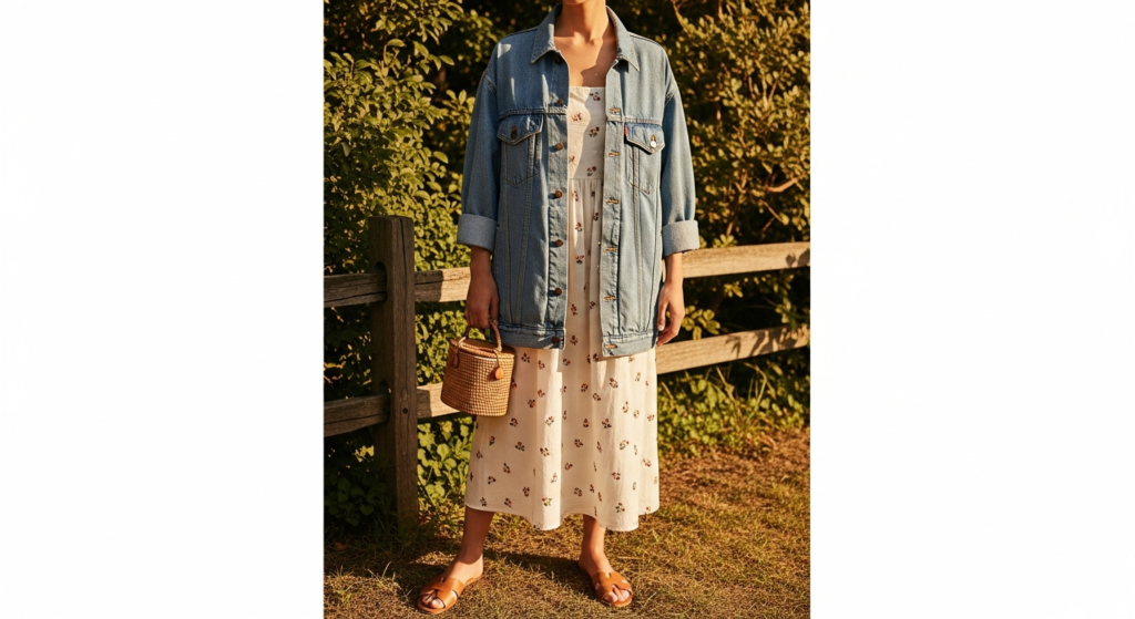 10. The Oversized Denim Jacket and Sundress — Warm-Season Layering at Its Best