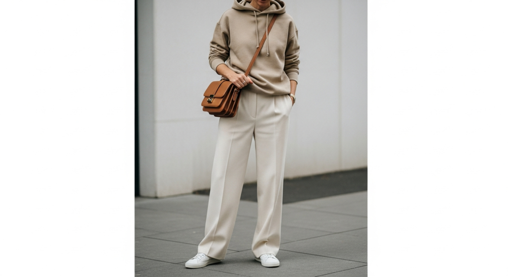 4. The Oversized Hoodie and Tailored Trousers — Comfort Meets Structure
