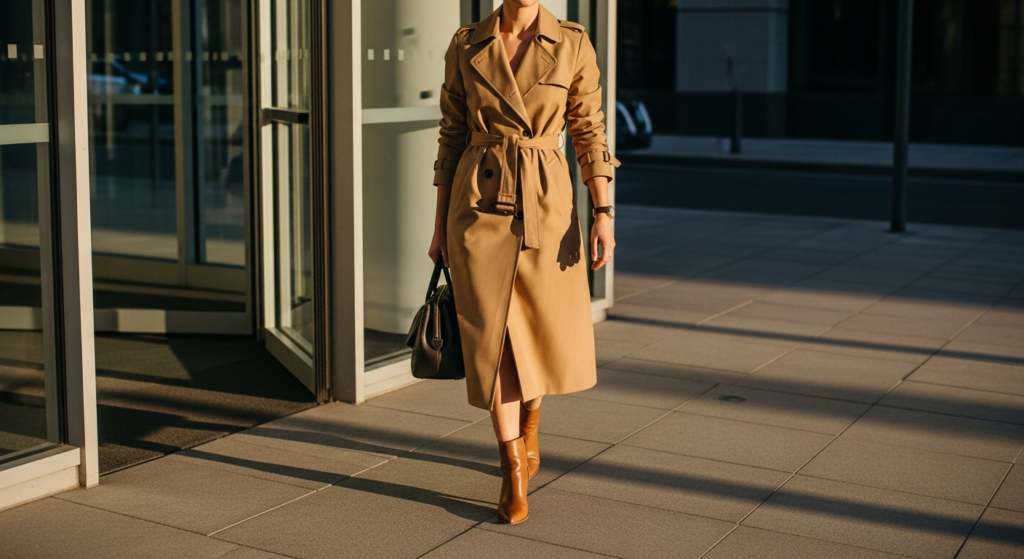 The trench coat is not simply outerwear — in stylish work attire, it functions as a statement finishing layer that elevates any outfit it covers. When worn as part of a considered work look, it communicates both practicality and impeccable taste.
