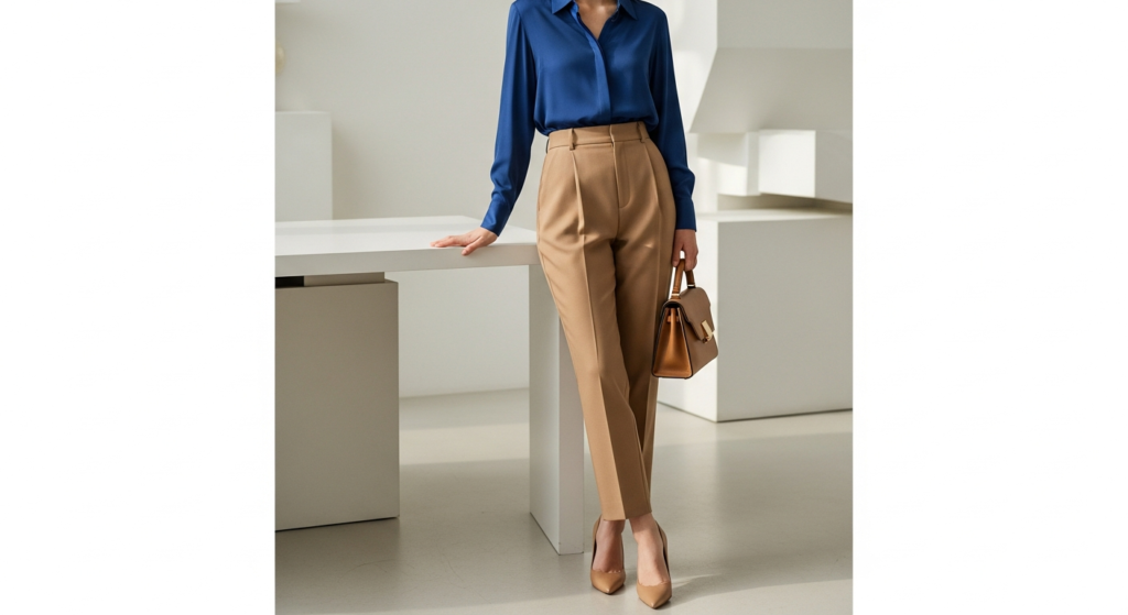 2. Silk Blouse with Tailored Trousers — Refined and Timeless