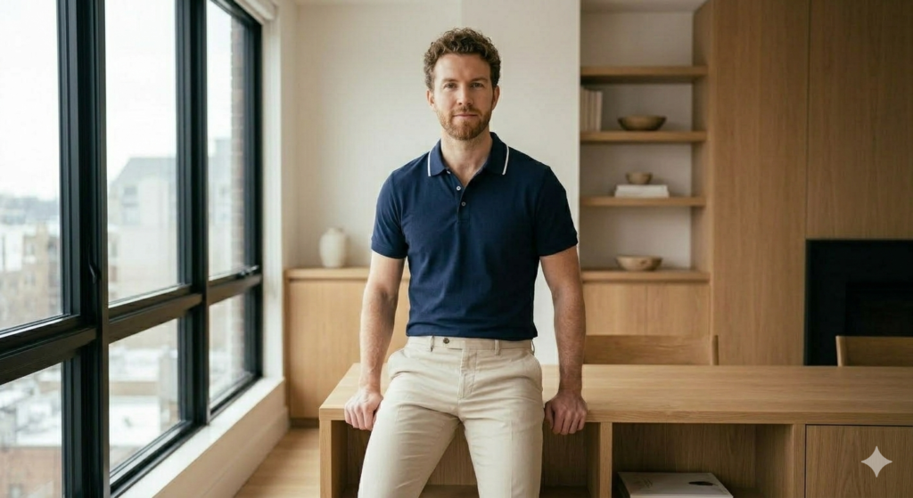 A classic polo shirt offers a clean, structured look that feels perfect for warm weather.