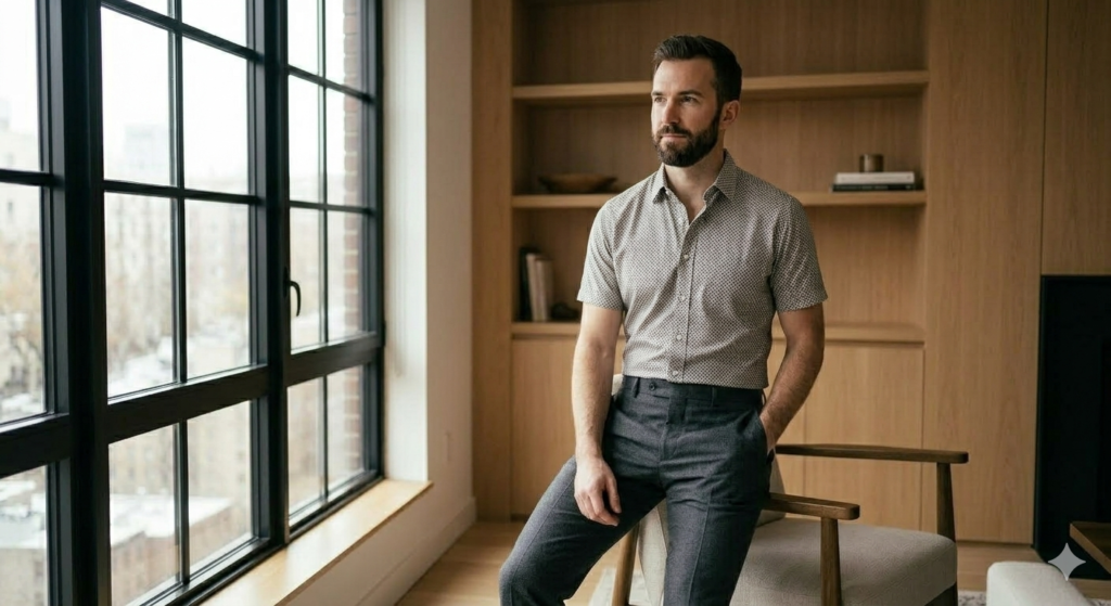 4. Short-Sleeve Button-Up with Tailored Trousers