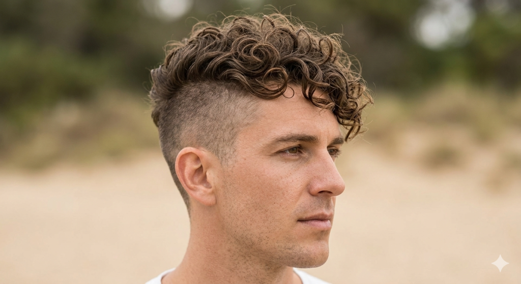 Keeps curls on top while trimming sides short.
