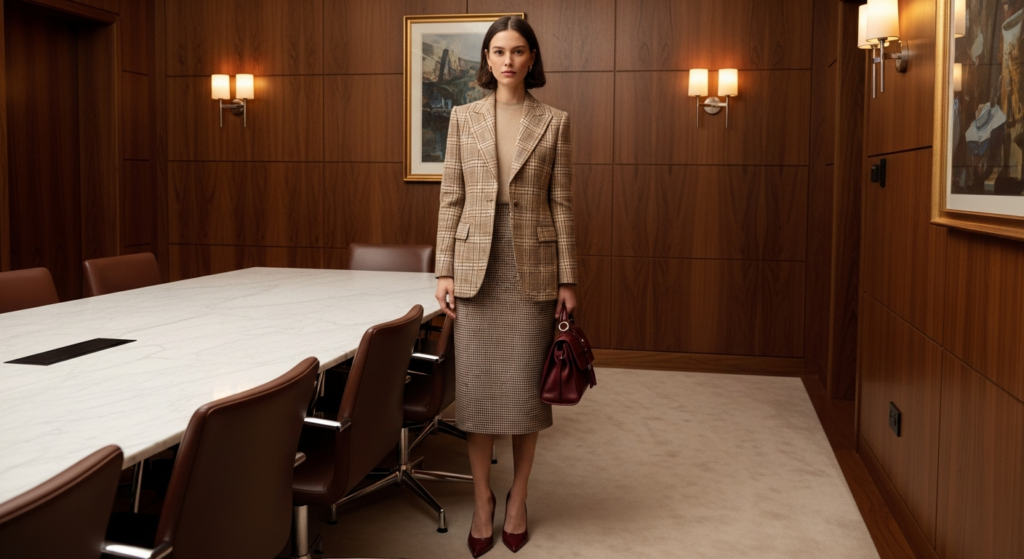 Pattern-mixing with plaid and check fabrics is one of the freshest directions in viral work outfit styling — and when approached with restraint, it reads as genuinely sophisticated rather than busy.