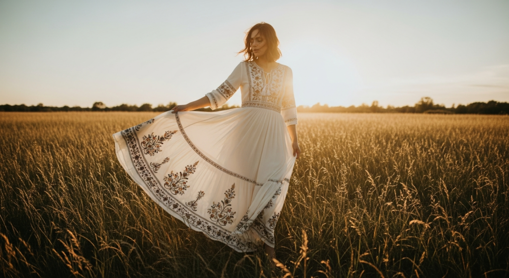 Long, flowing maxi dresses with delicate embroidery, tiered skirts, or subtle ethnic-inspired prints speak to a free-spirited elegance that has captured fashion lovers across every platform. The bohemian maxi is endlessly wearable — on the beach, at garden parties, or styled for urban environments with the right accessories.
