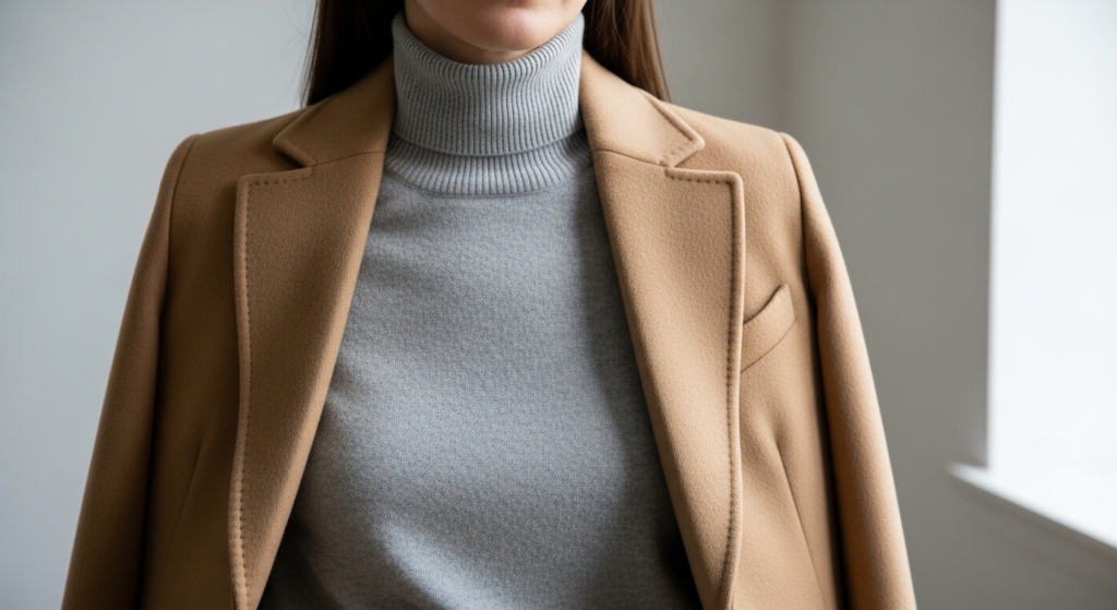 Styling Tip: Every piece in a quiet luxury outfit must fit with precision. Invest in tailoring where necessary — a beautifully fitting camel coat or structured trouser elevates the entire look. Layer a fine cashmere turtleneck under a tailored blazer in a complementary neutral. Add simple leather loafers, a structured top-handle bag, and nothing else.