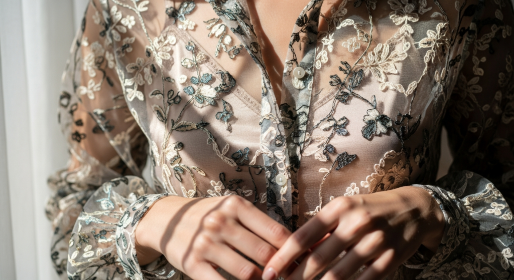 Sheer fabrics and delicate lace details have become central to the dream clothes aesthetic. Layering a sheer blouse over a satin camisole or wearing a lace-trimmed midi skirt adds dimension, texture, and a romantic softness to any look.