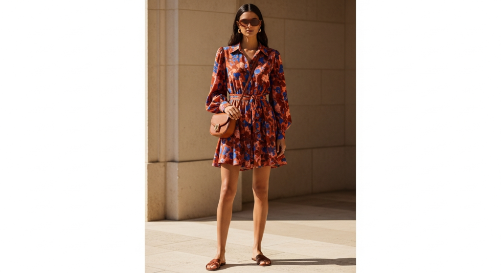 Styling Tip: Choose a printed mini dress in a quality fabric with genuine drape — a fine rayon, a quality viscose, or a lightweight cotton poplin — in a print that carries genuine visual energy and personality. Warm florals in jewel tones, abstract geometric patterns in vivid summer colours, and richly tonal botanical prints are all beautiful and broadly flattering printed mini dress options for summer. Add simple leather sandals or clean white trainers, a small crossbody or structured bag in a complementary neutral, and minimal jewellery — the print is the complete visual statement, and everything else should support it clearly and simply.