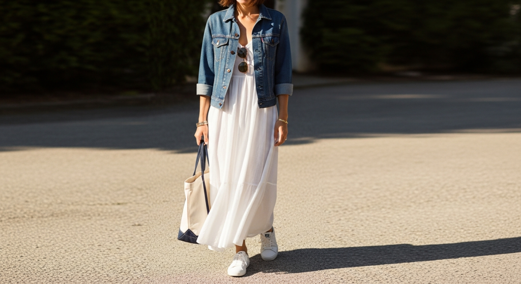 2. The White Sundress and Denim Jacket
