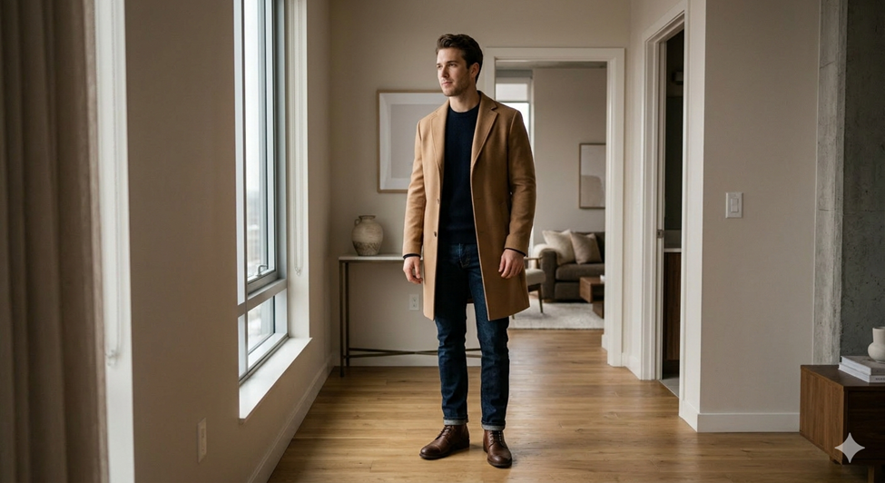 A tailored wool coat instantly elevates any winter look. Pairing it with dark denim creates a refined yet relaxed outfit that works for both workdays and weekend outings.