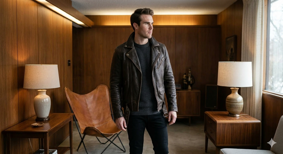 Leather jackets remain timeless winter staples when paired with warm knitwear.