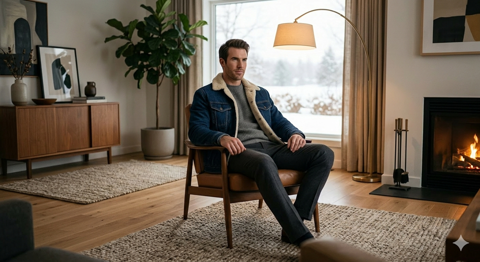 Shearling-lined denim jackets provide warmth while maintaining a cool vintage aesthetic.